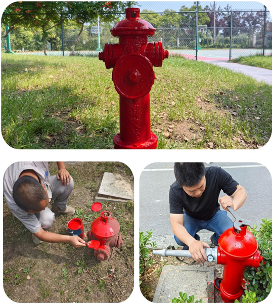 為及時高效完成消火栓翻新工作,工作人員迅速行動,選用材料,攜帶鐵刷、鋼絲球、扳手和油漆,小心拆開消防栓,細(xì)心清除銹跡,認(rèn)真打油上漆,給區(qū)域內(nèi)的消火栓進行除銹打油穿“新衣”,確保消防設(shè)施正常有效使用。同時,針對消防栓啟閉閥是否靈活、悶蓋內(nèi)膠圈是否完整、消防栓零部件是否有損壞缺失、水壓是否正常等情況,進行了現(xiàn)場測試并做好登記和維修,以確保消火栓的安全完整。