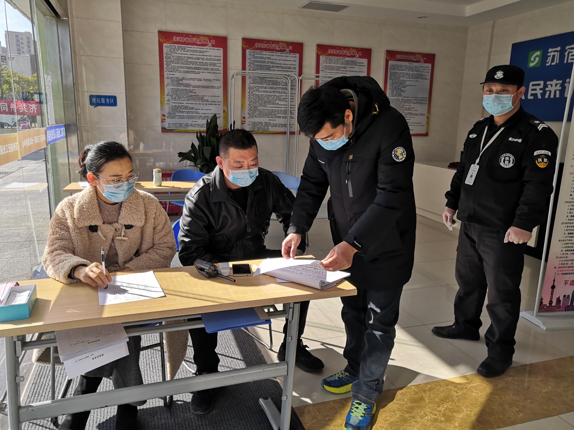 建發(fā)公司物業(yè)管理部經(jīng)理范以加,大年初二他就從老家返回奔赴崗位奮戰(zhàn)在一線,部署檢查落實(shí)部門物業(yè)項(xiàng)目疫情防控工作,至今一天也沒有休息。他說:“物業(yè)管理部承擔(dān)著園區(qū)公舍、蘇宿工業(yè)坊、夢家園、外國語學(xué)校等多個(gè)項(xiàng)目的物業(yè)管理工作,涉及范圍廣、面對(duì)人員多,特別是園區(qū)公舍作為園區(qū)唯一的企業(yè)職工集宿區(qū),企業(yè)復(fù)工后將有4000余名入住員工陸續(xù)返崗,是園區(qū)疫情防控工作的重點(diǎn)和難點(diǎn),疫情防控壓力巨大。我們一刻也不能放松,馬虎不得,作為一名退伍軍人、一名黨員,我必須以身作則,沖鋒在前。”